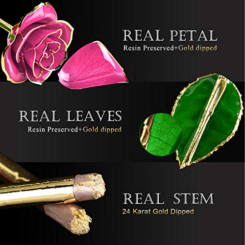 - 🎁 Resin preserved and 24k gold dipped real roses. It will be a unique gift for your girlfriend or wife on birthday, anniversary day, Valentine's Day, wedding day. And you can also gift it to your mother, grandmother, a female teacher, and so on. (To prevent customers from stabbing their fingers, our golden rose has been removed its thorns.)