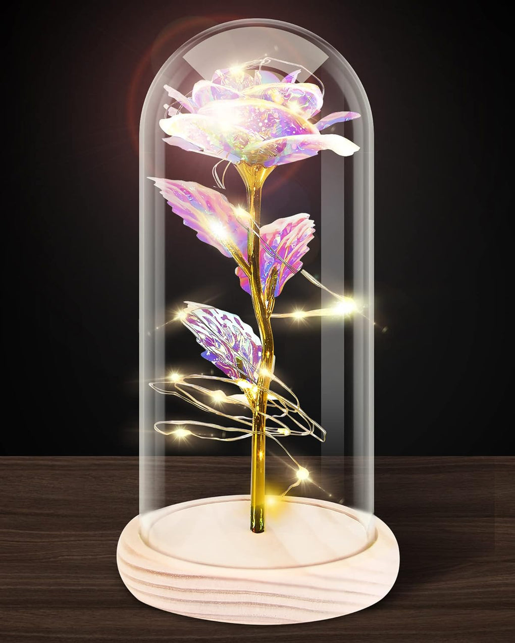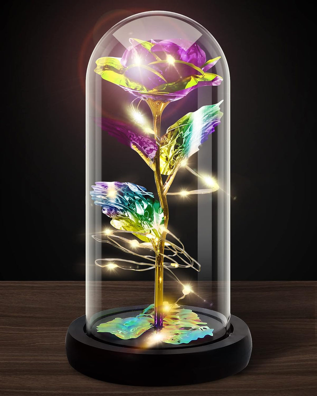 Galaxy Rose Flower for Women, Rainbow Forever Light Up Rose in A Glass Dome