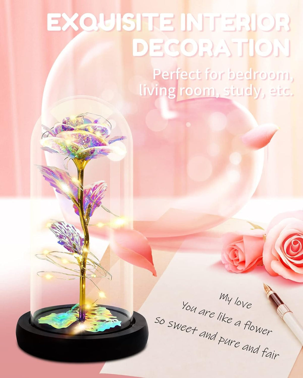 Symbol of Love: Inspired by the movie, enchanted rose is a symbol of love, affection and friendship. Special way to tell her "I love you more as time goes by", galaxy rose play a vital gifts for Mothers Day,Birthday,Christmas,Wedding Party,Anniversary,Valentines Day ,Graduation and more any occasion.