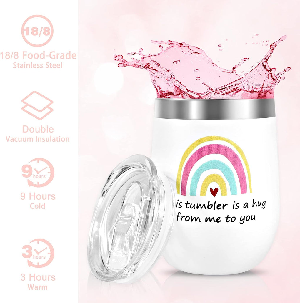 💝Gifts That Keep Giving: A high-quality tumbler emblazoned with rainbows and hugs, whenever she drinks from this tumbler, she will think of you. engraved healing bracelet will always be by her side. The fuzzy socks not only will it keep feet warm, but they will always stay as a remembrance for your care for her.