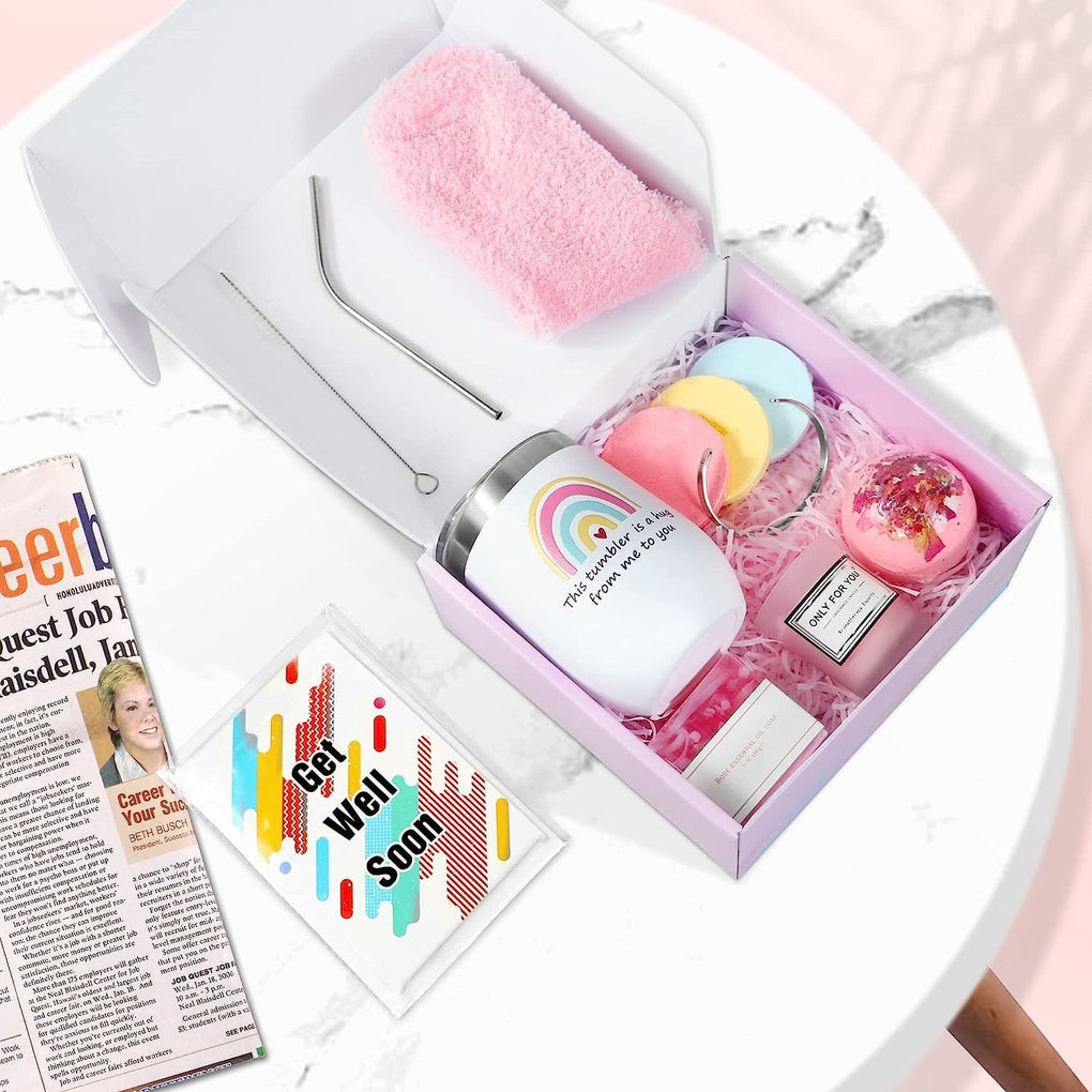 Feel Better Gift Box with Tumbler & Spa Set for Mom Female Friend Sister, Encouragement Thinking of You Gifts