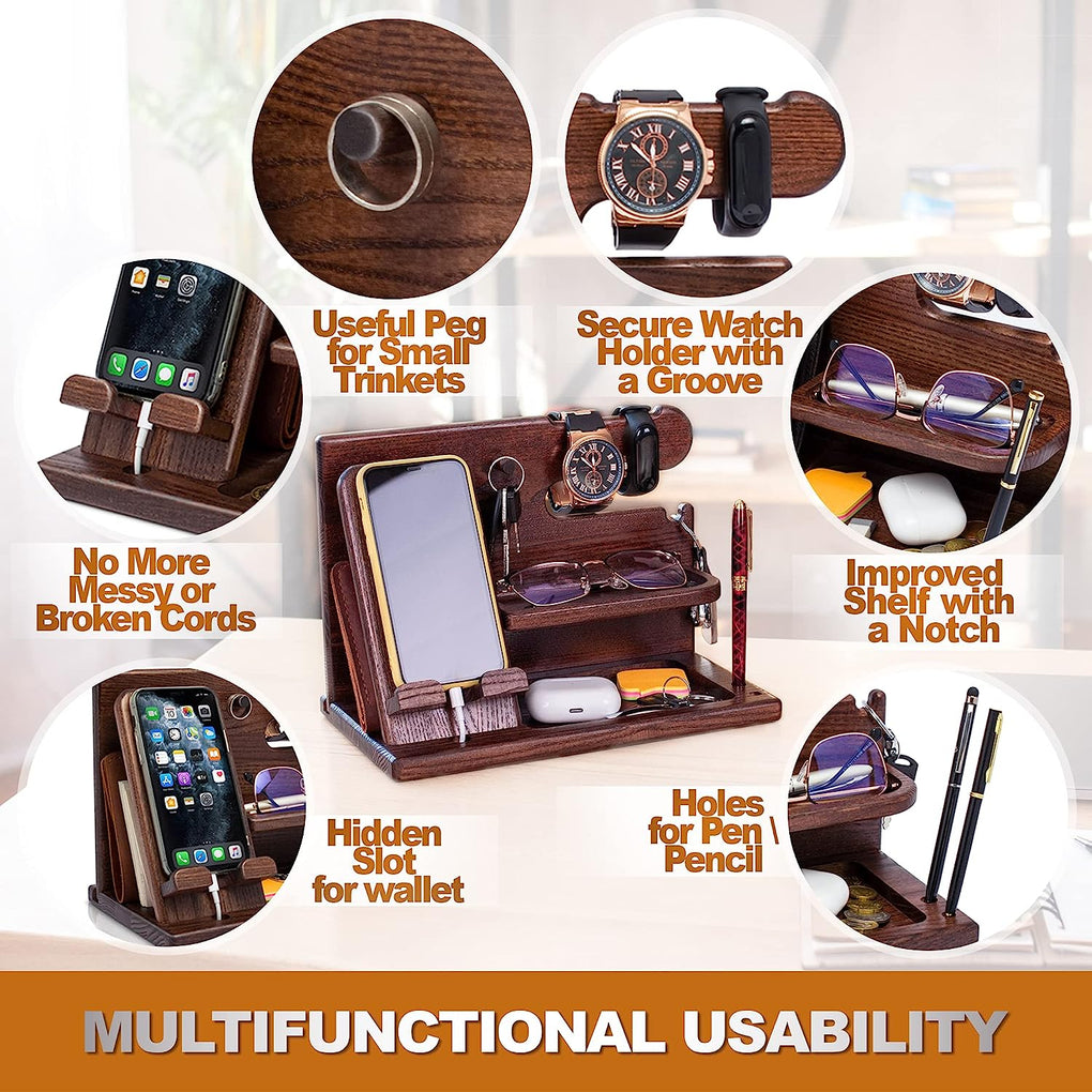 Looking for a super rad gift for your favorite dude? Check out this sick Wood Phone Docking Station! 🎁 This sleek and stylish docking station is the perfect gift for dads, bros, or any guy in your life who needs to keep their stuff organized in style. Made from high-quality wood, this docking station is not just a place to put your phone, but also has space for your keys, wallet, watch, and other essentials. It's a total lifesaver for anyone who's tired of losing their stuff all the time. Get yours today and give the gift of organization and style! 🌟