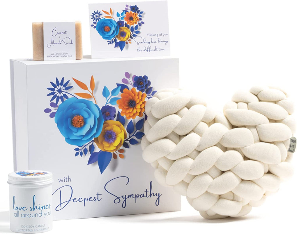 Condolence Sympathy Gift Basket for Bereavement Grief Gifts Candle Pillow & Soap - Sorry for Your Loss Thinking of You Grieving Care Package
