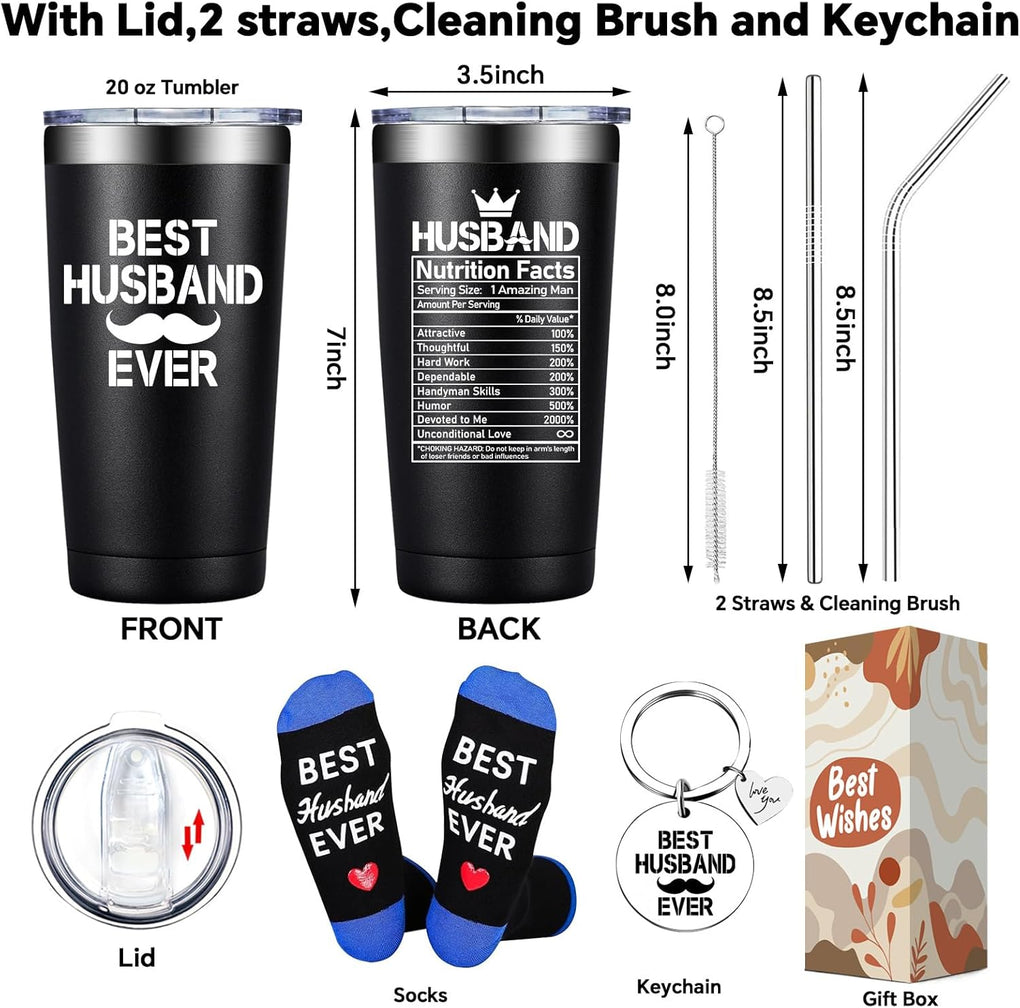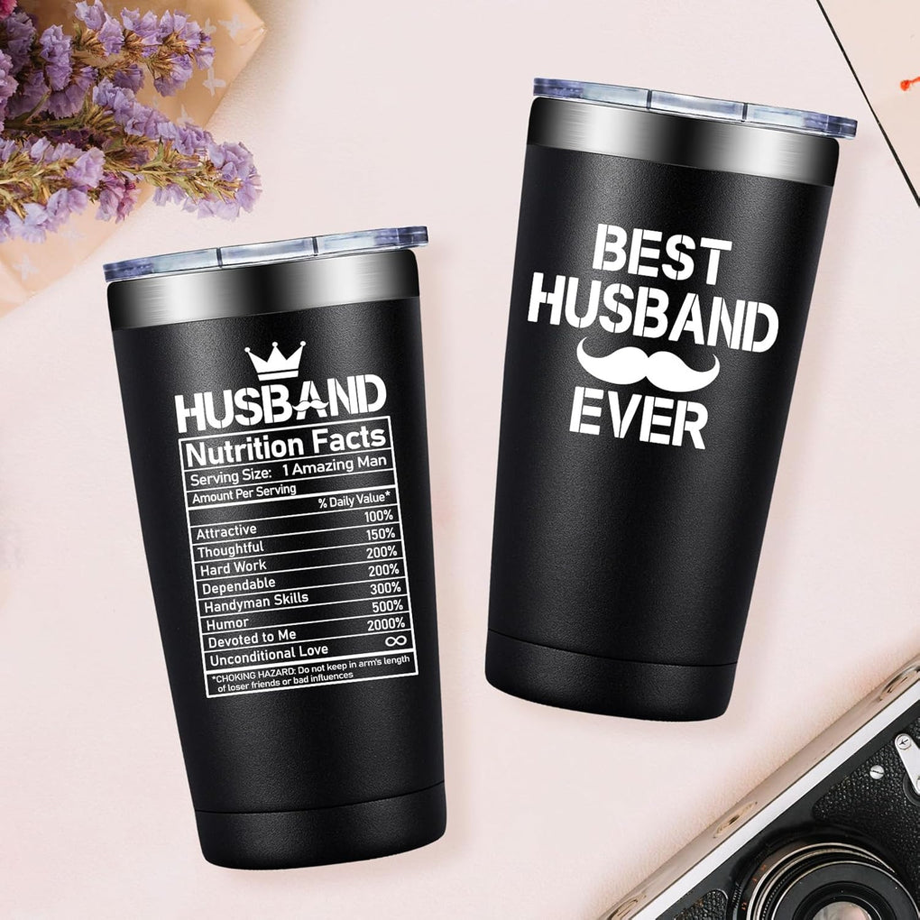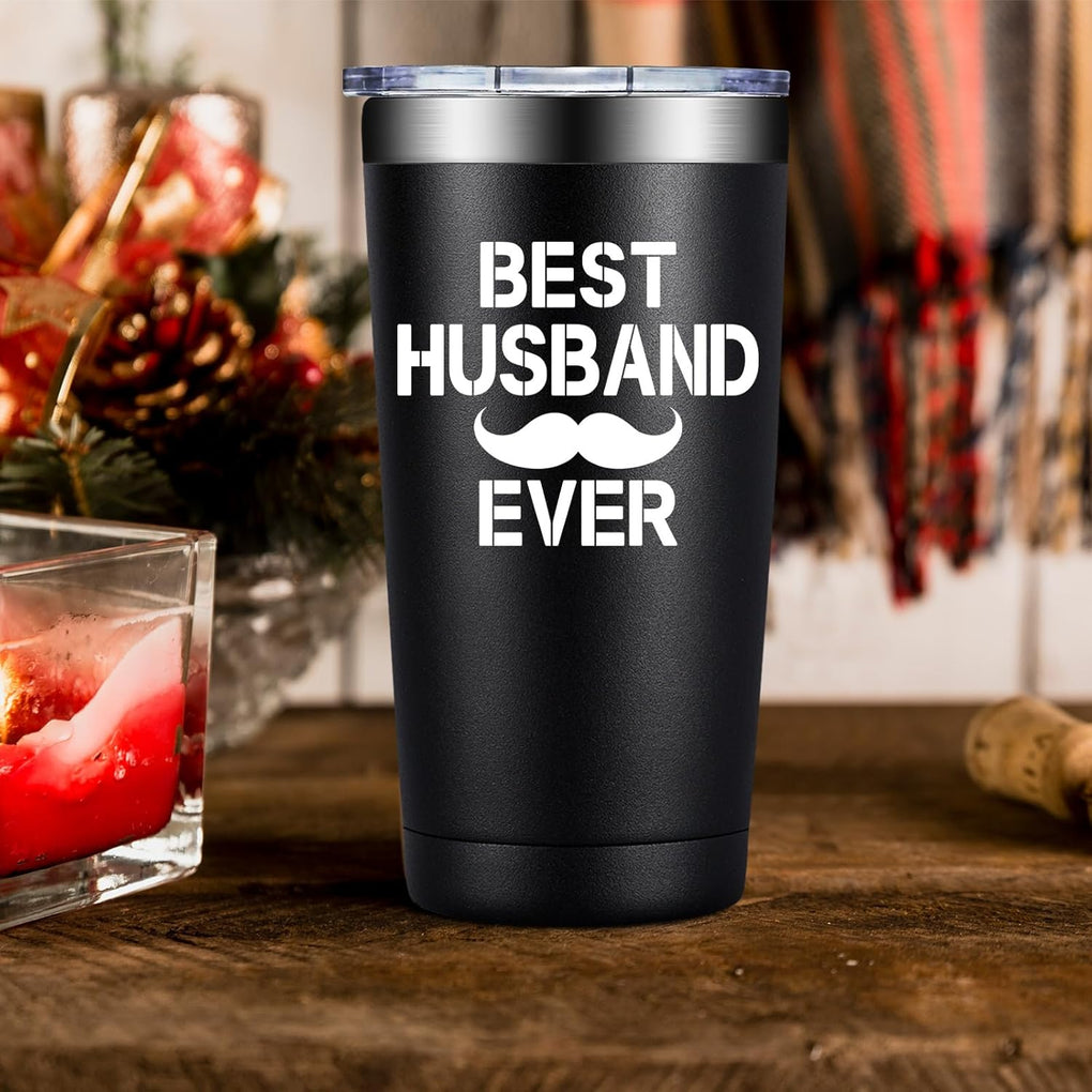 Celebrate the special man in your life with our "Best Husband Ever" Tumbler, a perfect gift to convey your love and appreciation. Whether given as a Hubbby Valentines Day gift, an anniversary present, or to celebrate another year together, it is designed to bring joy to any occasion. Crafted from high-quality stainless steel, this tumbler offers both style and functionality. The sleek, black finish and modern design make it a great addition to your husband's daily essentials. With its 20-oz capacity, it not only keeps beverages at the desired temperature for hours, but it's also perfectly portable, whether he's headed to the office or out for a day of adventure.