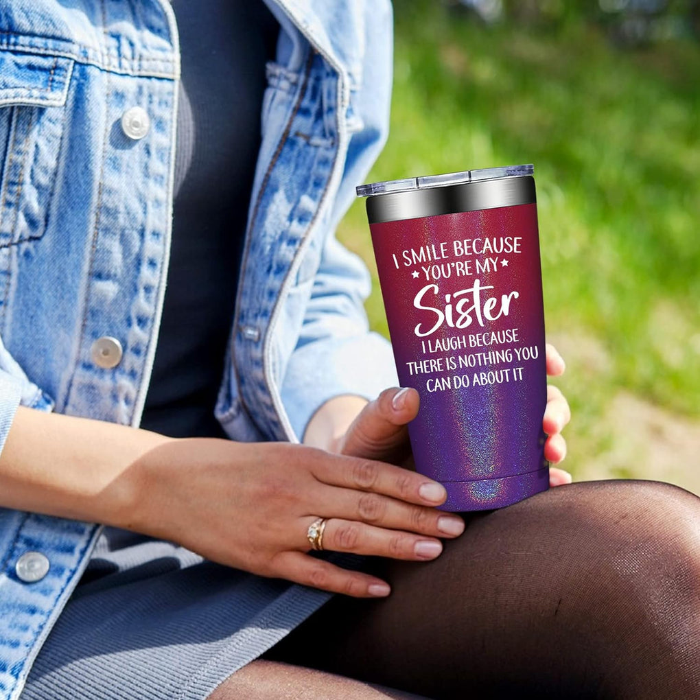 • [Versatile Use]: This tumbler cup is great for both hot and cold beverages, making it a versatile addition to your sister's drinkware collection.