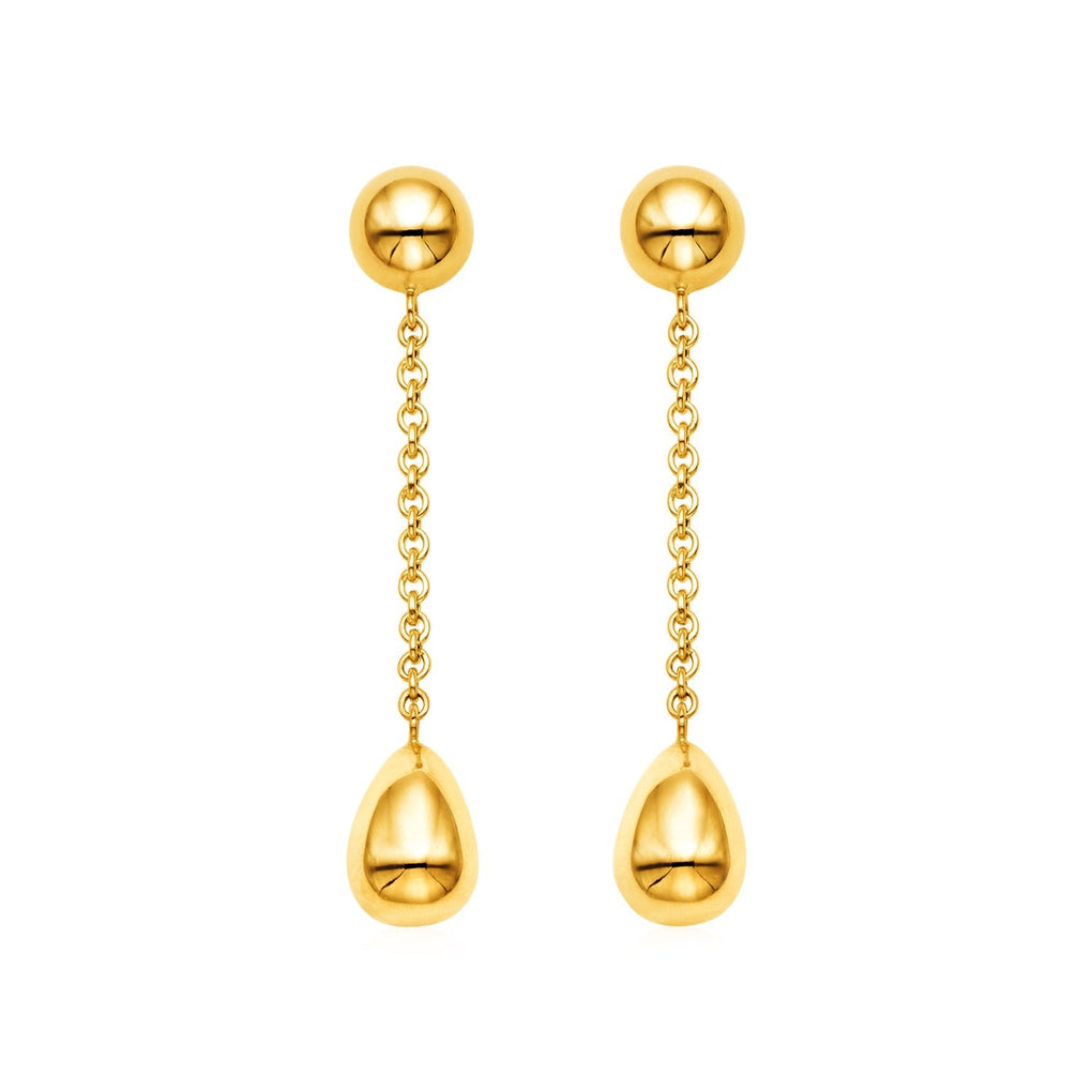 Polished rounded teardrops are joined to elegant domes by fine chain to create these timeless and versatile 14k yellow gold earrings. Post earrings are 48mm long and are held in place by pushback clasps.