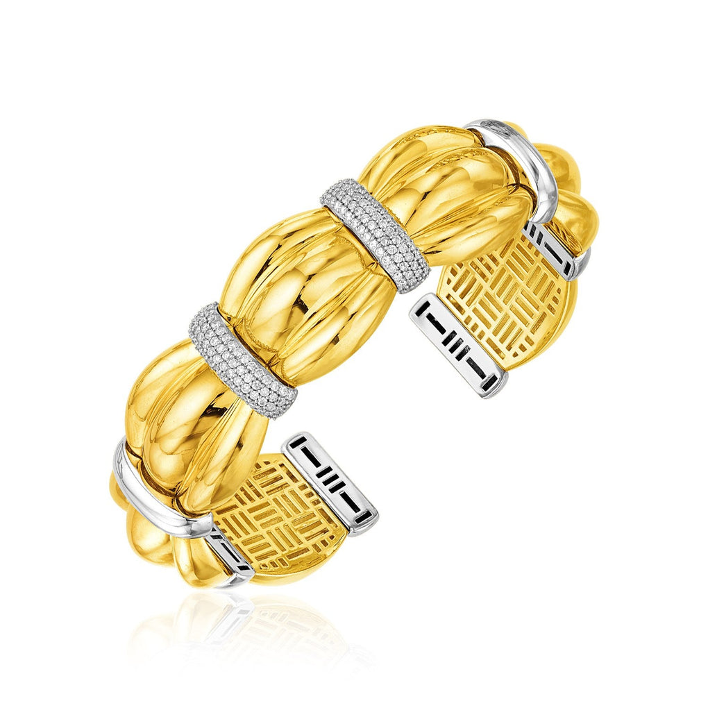 14k Two Tone Gold Domed Cuff Bangle with Diamonds