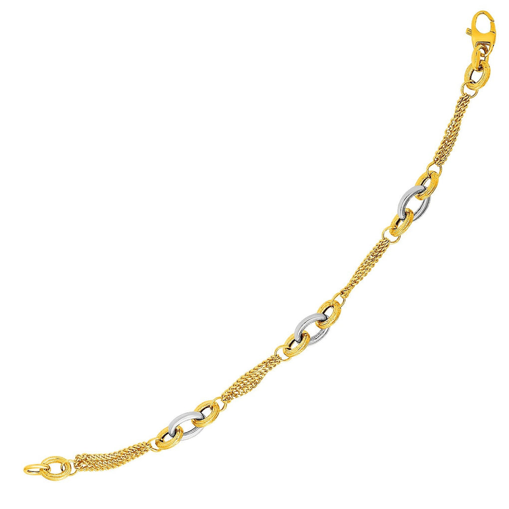 14k Two-Tone Yellow and White Gold Gourmette Bracelet with Links