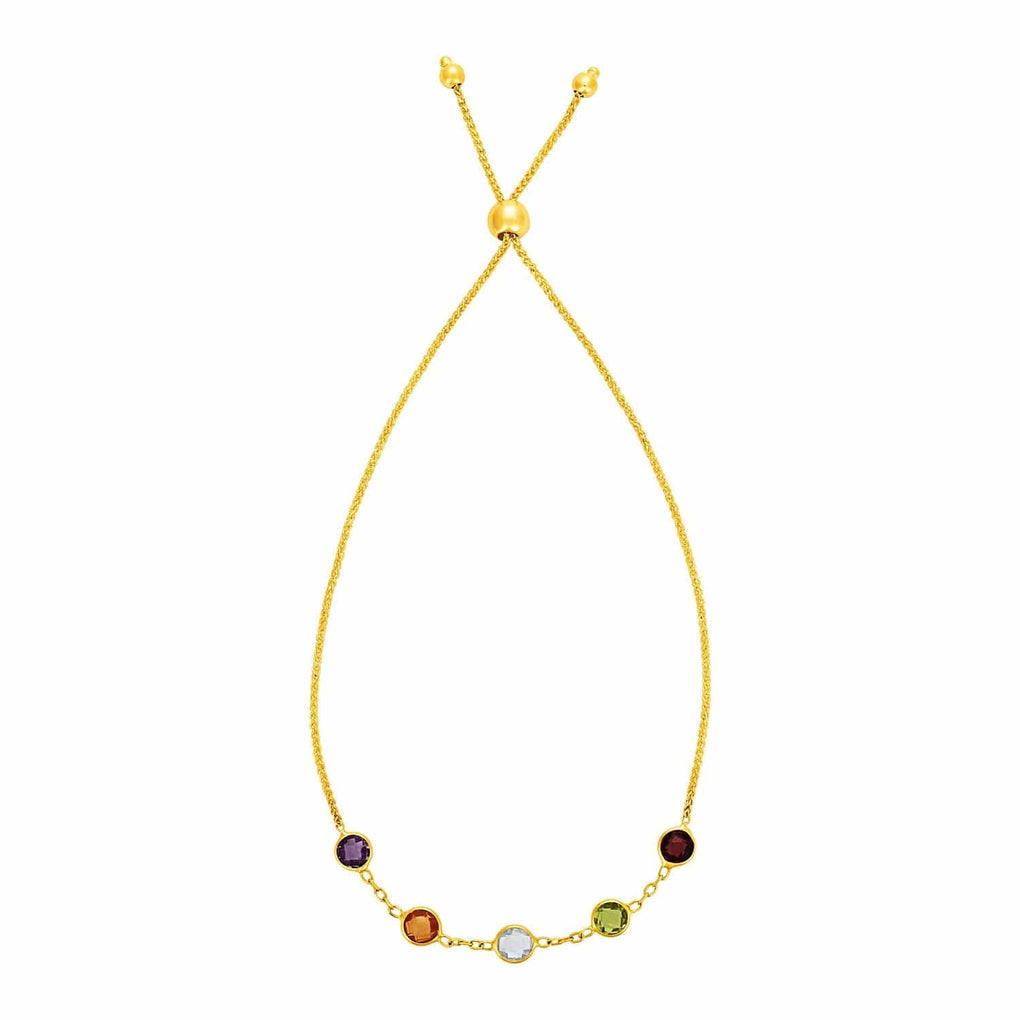 Adjustable Bracelet with Multicolored Small Round Gemstones in 14k