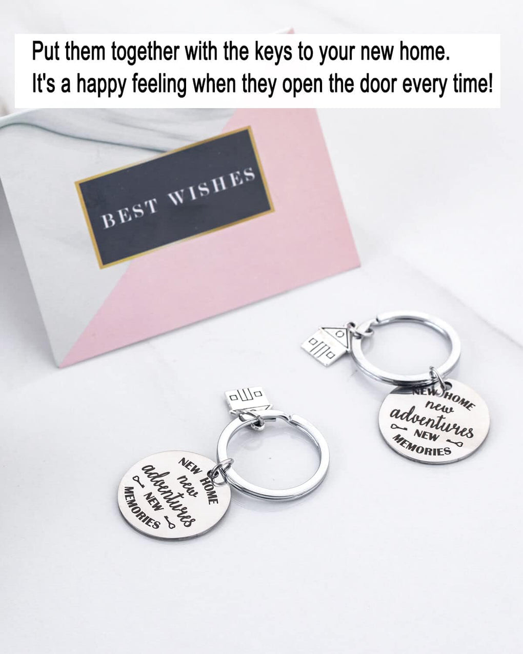 ♕Embrace the excitement of a fresh start with our New Home New Adventure New Memories gift box, showcasing two enchanting keychains engraved with the empowering phrases “New Home New Adventure New Memories.” These keychains serve as meaningful keepsakes, reminding new homeowners of their journey and the memories to come. Crafted with attention to detail, they add a touch of elegance to any set of keys and make for perfect housewarming gifts for new home experiences. Carry the essence of new beginnings with you, wherever you go.