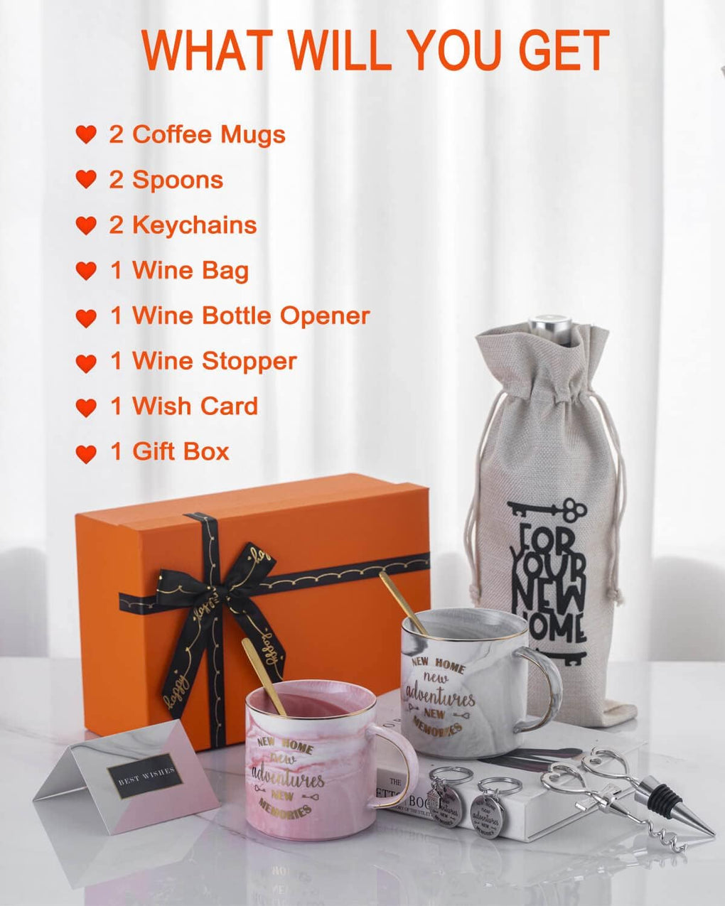 ♕Unveil the ultimate gift of luxury and style with our New Home New Adventure New Memories gift box. All items are carefully packaged in a beautiful high-end orange box, protected with foam padding for secure delivery to your doorstep.