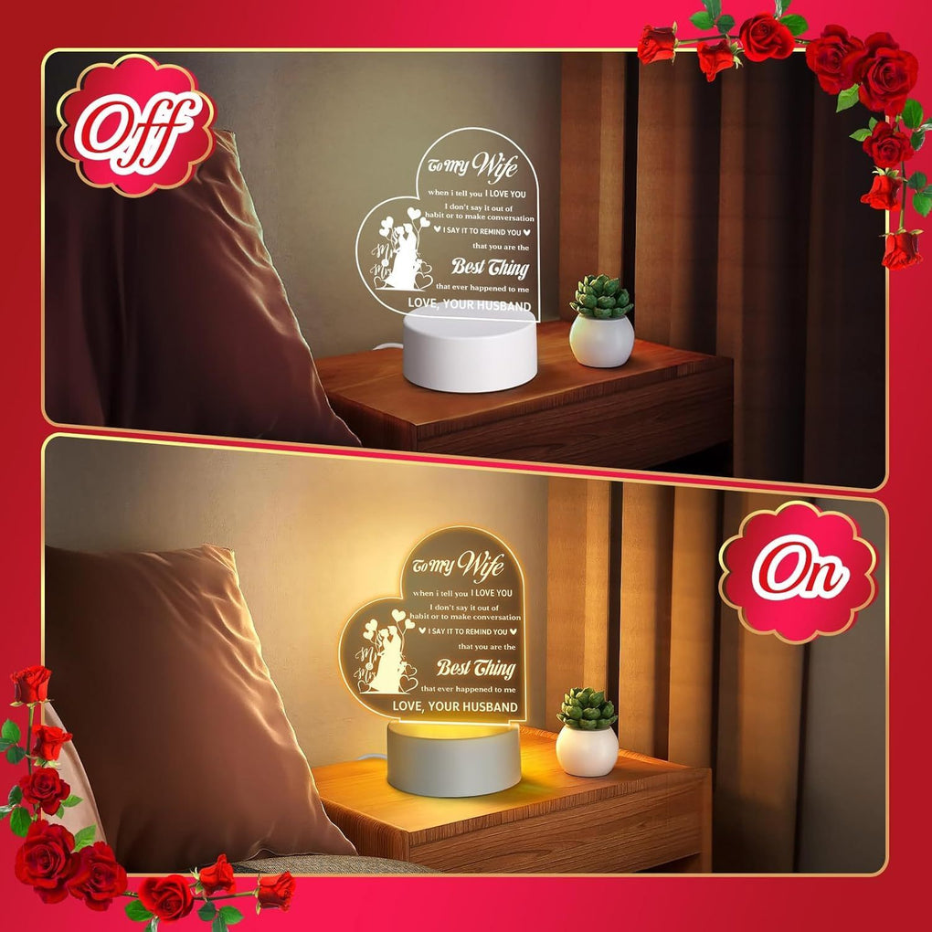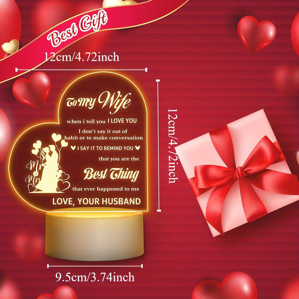 This uniquely crafted, USB-powered LED light serves not only as a stunning visual showpiece but also as an enduring symbol of your commitment and affection. The acrylic design allows the soft, warm glow to enhance your special moments, transforming any space into a haven of tenderness and passion. Whether you're searching for Valentine’s gifts for her or a timeless present for your wife, this decorative piece stands as a daily reminder of your love and genuine appreciation.