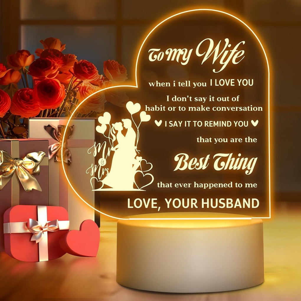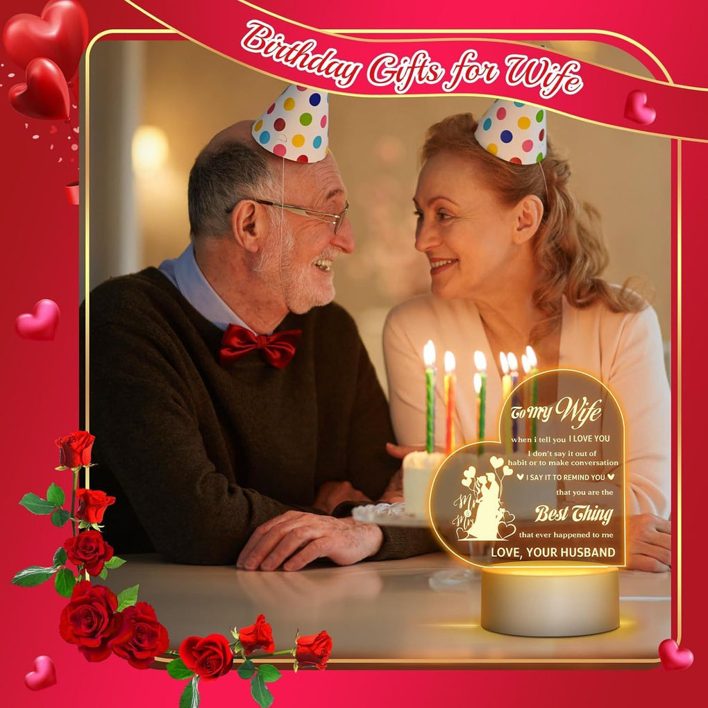 - [Perfect Occasion Fit] Whether as a wife birthday gift or a meaningful present for any milestone, this acrylic lamp effortlessly encapsulates beautiful emotions, transforming them into tangible expressions of love.