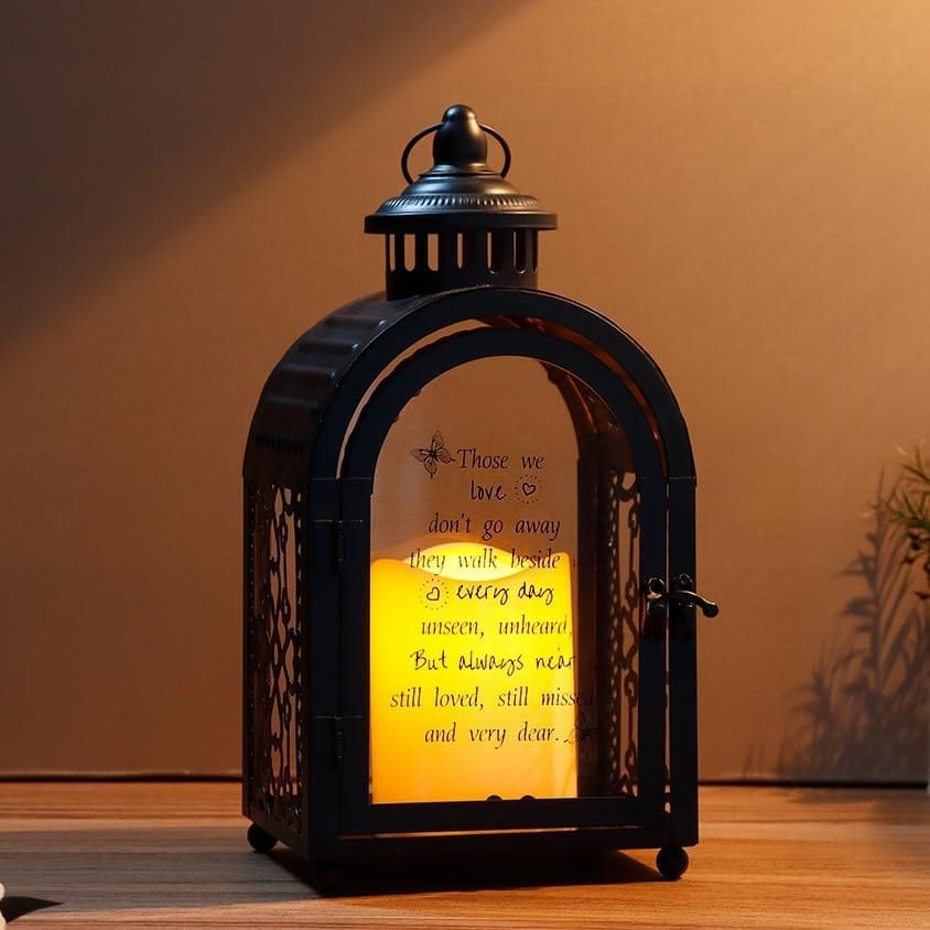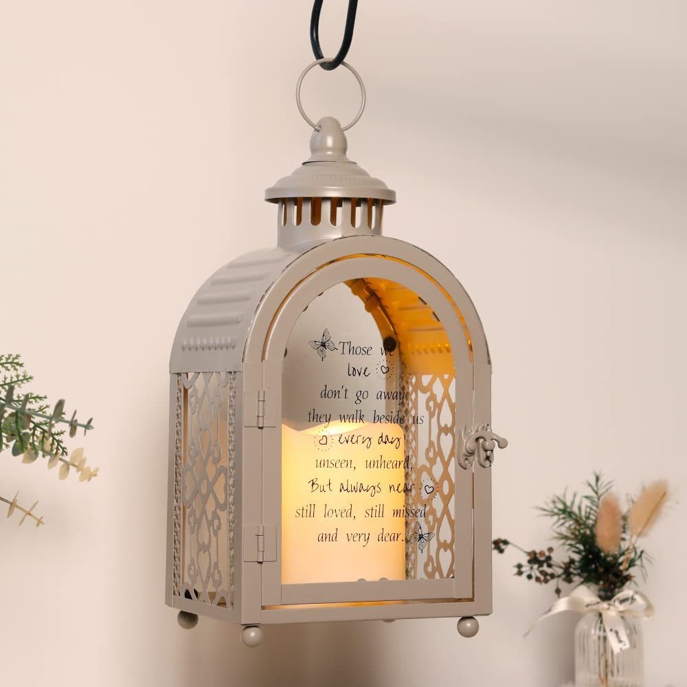 💡【GONE BUT NOT FORGOTTEN】A unique way to cherish a loved one who is no longer with us. Instead of flowers, you can send lasting mementos when someone leaves. This lantern is something that can be kept for years. Love Memories lantern have a sturdy design for indoor and outdoor hanging or stand-alone use, with a sturdy square bottom that stands firmly on rocks.