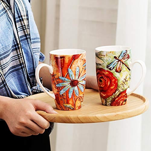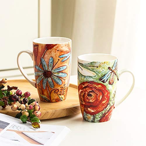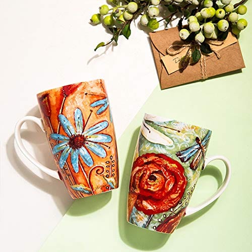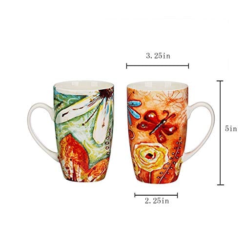 Coffee Mug Travel Coffee Ceramic Mug Porcelain Latte Tea Cup in Box,Set of 2,Butterfly