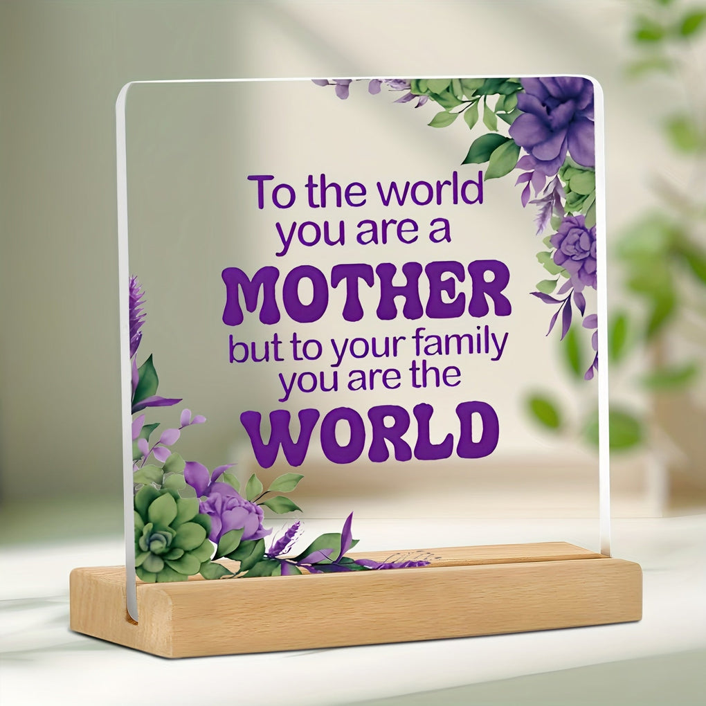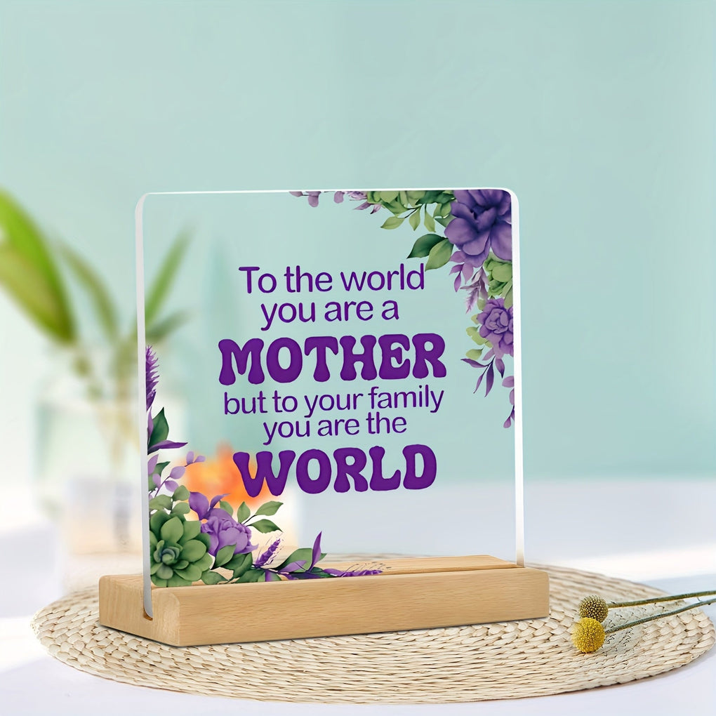 Perfect for various occasions such as birthdays, Mother's Day, or Thanksgiving, it is not only a gift that conveys deep sentiment but also a versatile piece of decor that enhances any space. Its elegant yet contemporary design ensures that it complements any interior style, making it an ideal piece for vanities, living rooms, or offices. The decorative sign is expertly crafted from high-quality acrylic, ensuring durability and longevity. It comes with a sleek wooden stand that provides stability while adding a touch of warmth to its modern aesthetic.