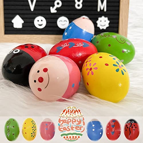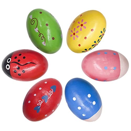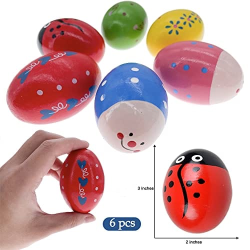 6 Pcs Wooden Percussion Musical Egg, Natural Wooden