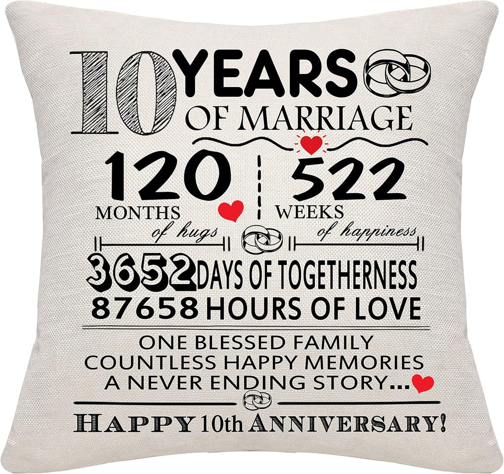 Crafted with meticulous attention to detail, this anniversary throw pillow cover is made from high-quality materials that exude comfort and sophistication. The versatile design blends seamlessly with any home décor, making it a treasured addition to any living space. Display it proudly on your couch, bed, or favorite chair, and let it remind you every day of the cherished moments you've shared over the past ten years. Transform your home into a haven of love and nostalgia with this beautiful anniversary gift.